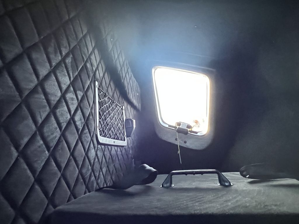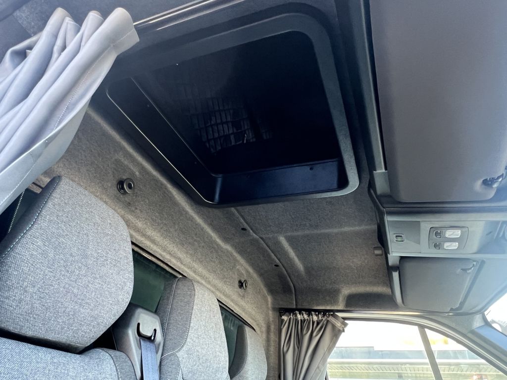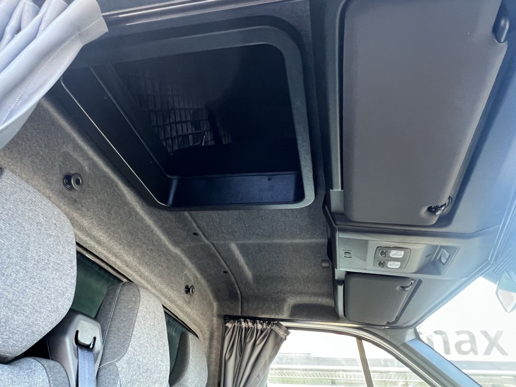 • Schlafkabine XL Oben , + Vorhänge • Standheizung • Extra-Batterie • Rückseite der Plane auf Federn gerollt • Rückwärtskamera• Schiebeplane – linke Seite