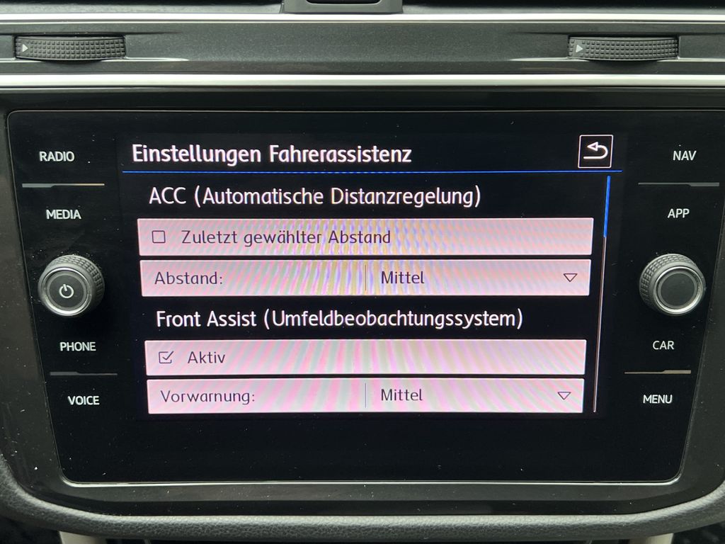 * Fahrassistenz-System: Autom. Distanzregelung (ACC) mit Umfeldbeobachtungssystem (Front assist, bis 210 km/h)